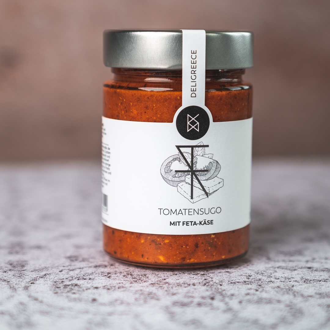 Dieses Tomatensugo mit Feta-Käse vereint das volle Aroma sonnengereifter Tomaten mit der herzhaften Salznote charaktervollen Feta-Käses. Die Sauce verbindet fruchtige Tomatenfülle mit der cremigen Würze des Feta und einer ausgewogenen Kräutermischung zu einem harmonischen, mediterranen Geschmackserlebnis. Die samtige Textur und das reichhaltige Aroma machen dieses Sugo zu einer vielseitigen Grundlage, die Pasta-Gerichte, Aufläufe oder gefüllte Gemüsevarianten geschmacklich bereichert – wenn du intensiven Tomatengeschmack mit würzigem Käse liebst.